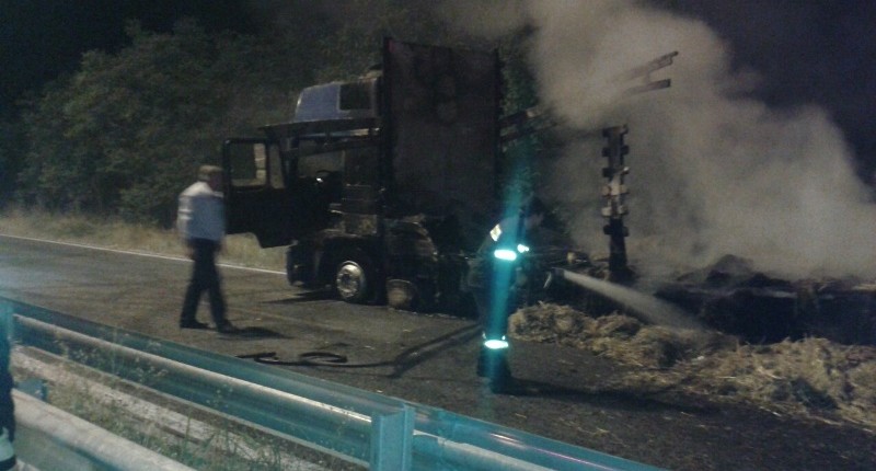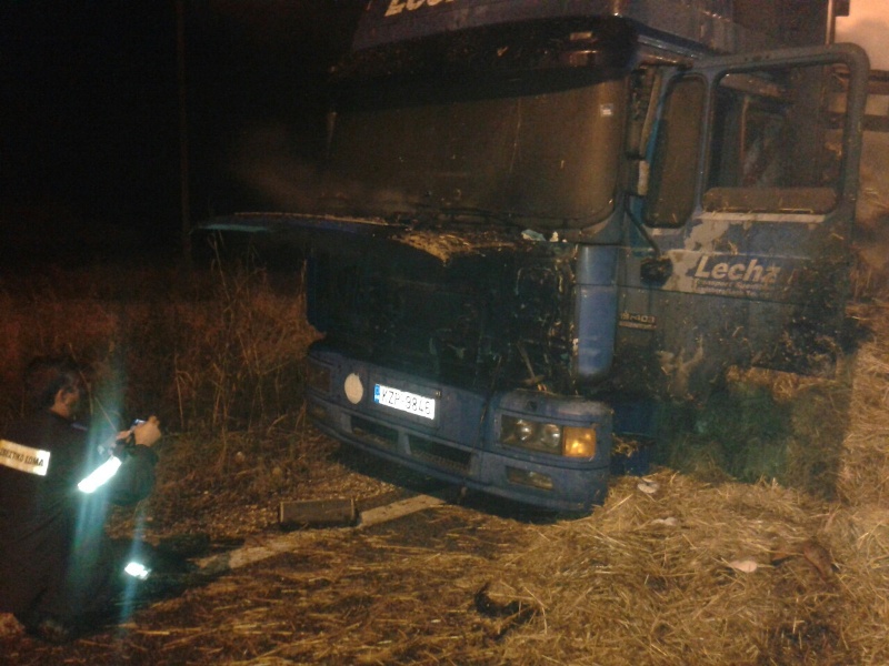 Ευτυχώς ο οδηγός της νταλίκας που είναι από το Μεσολόγγι και μετέφερε μπάλες με άχυρο και τριφύλλι πρόλαβε και βγήκε εγκαίρως από το φλεγόμενο όχημα το οποίο καταστράφηκε σχεδόν ολοσχερώς