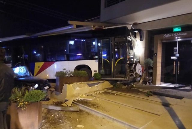 Λόγω της σύγκρουσης το λεωφορείο του ΟΑΣΘ εξετράπη της πορεία του και χτύπησε σε κατάστημα.