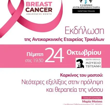 Εκδήλωσης της Αντικαρκινικης Εταιρείας Παράρτημα Τρικάλων την Πέμπτη 24 Οκτωβρίου στο Μουσείο Τσιτσάνη στις 19.30