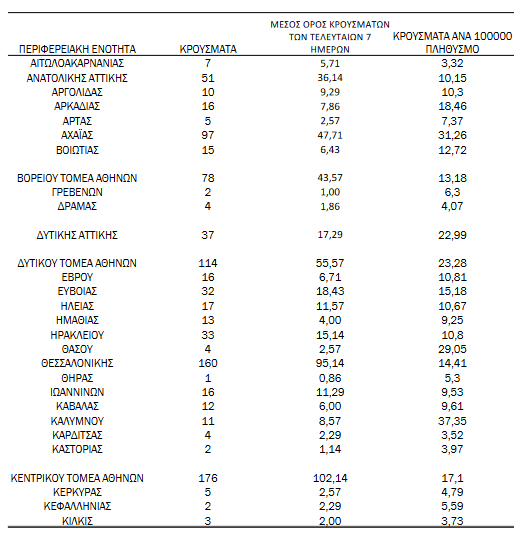 Δείτε τη γεωγραφική κατανομή των κρουσμάτων: