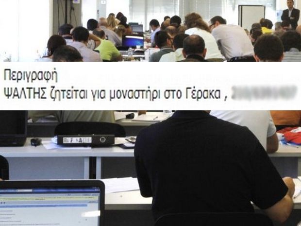 Τι δεν καταλαβαίνεις; Ψάλτης. Μοναστήρι. Γέρακας.Ούτε πτυχίο Κοινωνικής Θεολογίας ζητάει η αγγελία ούτε συμμετοχή στο Voice. Κάνε την προσευχή σου. Πάρε τηλέφωνο κι οι μήνες ανεργίας σου θα μηδενίσουν σύντομα.