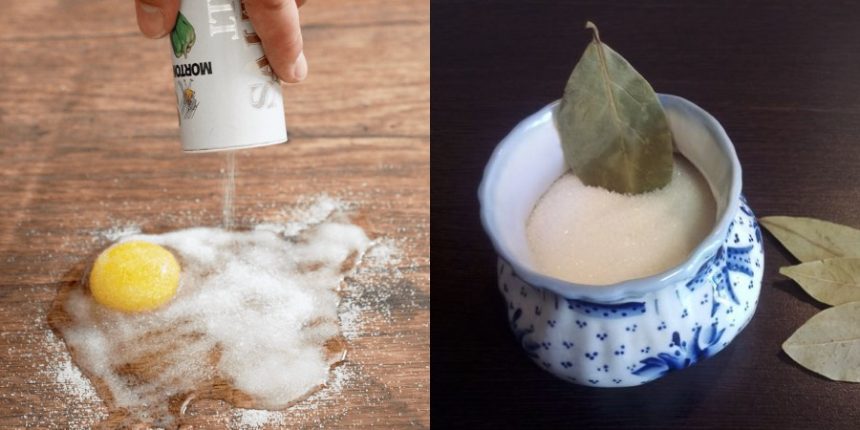 – Καθαρισμός ενός σπασμένου αυγού: Θα είναι ευκολότερο να αφαιρέσετε ένα σπασμένο αυγό από το πάτωμα εάν το καλύψετε με αλάτι. Το μείγμα θα στεγνώσει σε 5 λεπτά και θα είναι ευκολότερο να το σκουπίσετε.