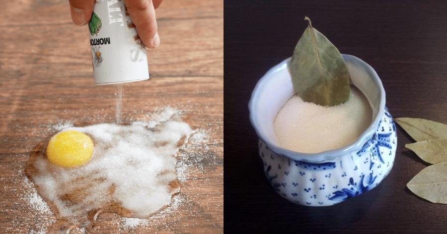 – Καθαρισμός ενός σπασμένου αυγού: Θα είναι ευκολότερο να αφαιρέσετε ένα σπασμένο αυγό από το πάτωμα εάν το καλύψετε με αλάτι. Το μείγμα θα στεγνώσει σε 5 λεπτά και θα είναι ευκολότερο να το σκουπίσετε.