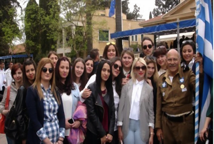 Στις φωτογραφίες εικονίζονται οι 15 Τρικαλινές καταρτιζόμενες του ΙΕΚ με τον 83χρονο αγωνιστή της ΕΟΚΑ Σάββα Ταλιαδώτο που παρακολούθησε όλη την παρέλαση όρθιος, με τον Γενικό Διευθυντή του Υπουργείου Παιδείας της Κύπρου και με τις Διευθύντριες Φυσικής Αγωγής του υπουργείου που πραγματικά ήταν η ψυχή της παρέλασης και με την πρόεδρο του ΠΑΣΟΚ Φώφη Γεννηματά