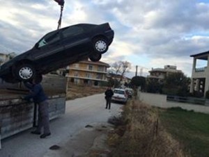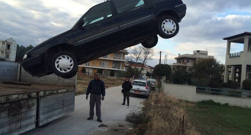 Ετσι σήμερα επιστρατεύτηκε γερανός που σήκωσε και φόρτωσε τα οχήματα σε φορτηγό, απελευθερώντας τους χώρους που καταλάμβαναν στερώντας θέσεις στάθμευσης.