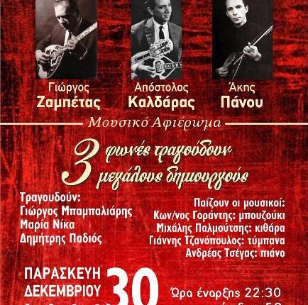 «3 φωνές τραγουδούν 3 μεγάλους δημιουργούς στης ψυχής μας τα