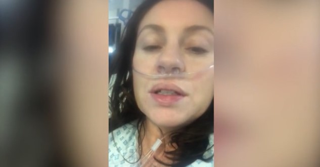 Στο βίντεο που τράβηξε από το νοσοκομείο η 39χρονη εμφανίζεται να λέει, μεταξύ άλλων: «Αν κάποιος εξακολουθεί να καπνίζει, αφήστε κάτω το τσιγάρο. Σας το λέω, χρειαζόμαστε τους κ@@-πνεύμονές μας». Επίσης επισημαίνει ότι έχει μέρες να δει τον σύζυγο και τις δύο κόρες της, και ότι το σώμα της δίνει μάχη να αντιμετωπίσει την ασθένεια.