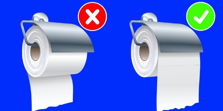 – Ο τρόπος που κρεμάς το χαρτί τουαλέτας: Πρόκειται για ένα κλασικό ερώτημα. Αλλά αν το μελετήσουμε βαθύτερα, θα καταλάβουμε ότι ο σωστός τρόπος για να κρεμάσουμε το χαρτί τουαλέτας είναι όπως φαίνεται στη δεξιά πλευρά της φωτογραφίας. Επιστήμονες από το Πανεπιστήμιο του Κολοράντο εξηγούν ότι με αυτή τη μέθοδο θα αγγίζετε μόνο το χαρτί υγείας που χρησιμοποιείτε κάθε φορά.