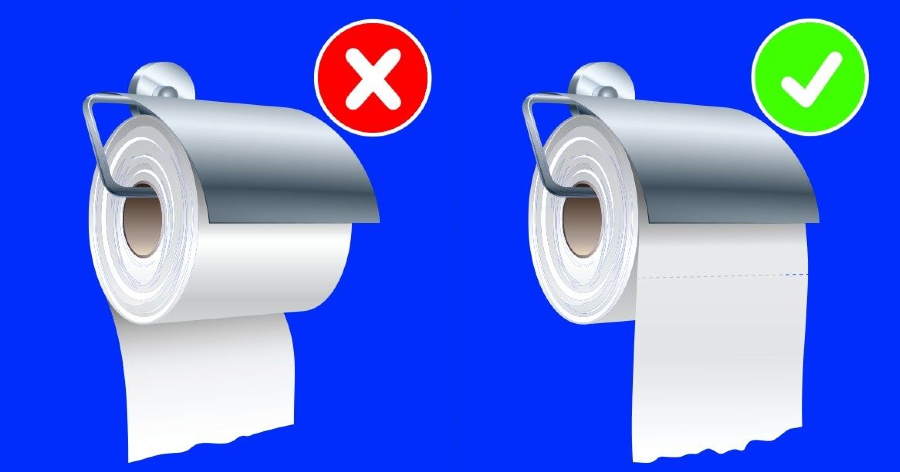 – Ο τρόπος που κρεμάς το χαρτί τουαλέτας: Πρόκειται για ένα κλασικό ερώτημα. Αλλά αν το μελετήσουμε βαθύτερα, θα καταλάβουμε ότι ο σωστός τρόπος για να κρεμάσουμε το χαρτί τουαλέτας είναι όπως φαίνεται στη δεξιά πλευρά της φωτογραφίας. Επιστήμονες από το Πανεπιστήμιο του Κολοράντο εξηγούν ότι με αυτή τη μέθοδο θα αγγίζετε μόνο το χαρτί υγείας που χρησιμοποιείτε κάθε φορά.