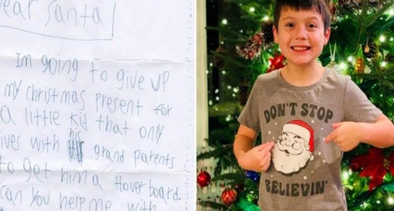 Όταν, λοιπόν, ο μικρός Hudson το έμαθε, αποφάσισε να γράψει και ο ίδιος ένα γράμμα ζητώντας προσωπικά αυτή τη χάρη. Του έγραψε: «Δίνω το Χριστουγεννιάτικο δώρο μου σε ένα μικρό παιδί που ζει μόνο με τους παππούδες του και θέλει και εκείνο ένα hoverboard. Μπορείς να με βοηθήσεις με αυτό;»