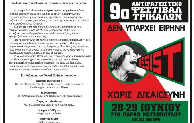 Για την Ακροδεξιά απειλή τόσο στην Ελλάδα, όσο και στην Ευρώπη συζητάμε σήμερα στο 9ο Αντιρατσιστικό Φεστιβάλ Τρικάλων, στο πάρκο Ματσοπουλου στις 8 μ.μ. μετά τα πρόσφατα αποτελέσματα των ευρωεκλογών, αλλά και πριν από αυτές.