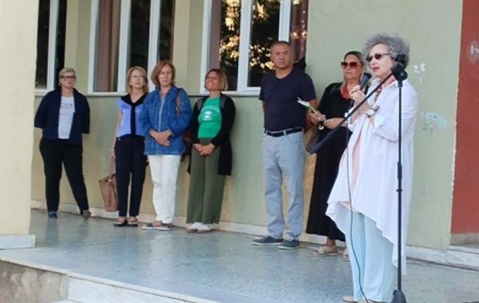 Η κα Τσουμπέκου απηύθυνε ομιλία στην ολομέλεια του σχολείου, ενώ οι μαθητές και