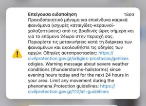 trikaladay.gr / Τοπικά / Νέο μήνυμα του 112 εστάλη σήμερα το πρωί στα κινητά Τρικαλινών για ακραία καιρικά φαινόμενα