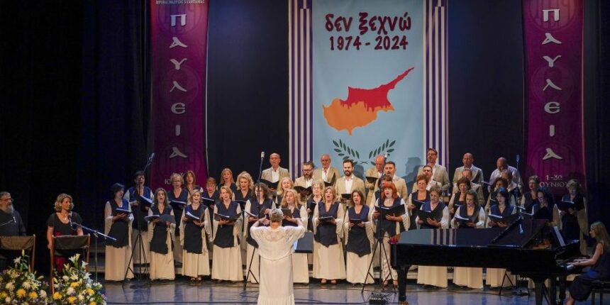 Η Δημοτική Χορωδία Τρικάλων παρουσίασε ειδικό μουσικό πρόγραμμα υπό τη διεύθυνση της μαέστρου κ. Ελένης Ζιάκα. Τα τραγούδια συνοδεύονταν από δραματοποιημένη ανάγνωση κειμένων Ελλήνων και Κυπρίων λογοτεχνών, τα οποία ανέγνωσαν στα αναλόγια ο υπεύθυνος του Γραφείου Τύπου της Μητρόπολης π. Γεράσιμος Μπεκές και η Περιφερειακή Σύμβουλος Ημαθίας και συνεργάτιδα του Θεατρικού Εργαστηρίου της Μητρόπολης κ. Συρμούλα Τζήμα – Τόπη.
