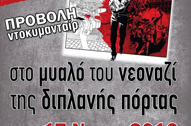 Την Πέμπτη 17 Νοεμβρίου θα πραγματοποιηθεί η προβολή του ντοκιμαντέρ «Χρυσή Αυγή – Προσωπική Υπόθεση», της Angélique Kourounis στο Αυτοδιαχειριζόμενο Κοινωνικό Χώρο «Rossonero» στις 8.30 μ.μ.