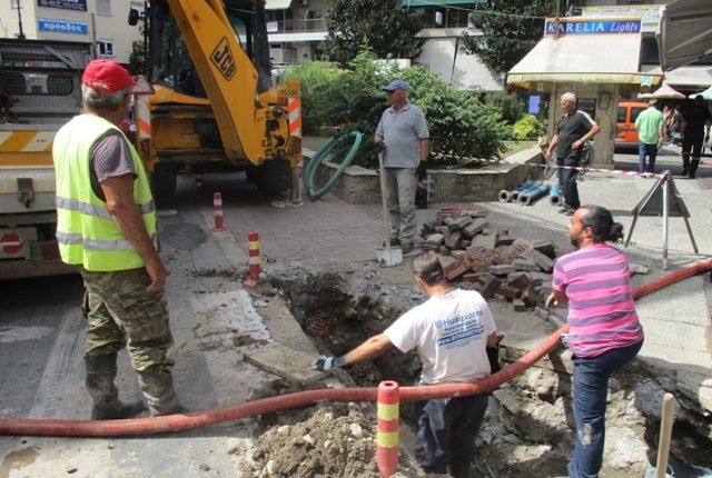 Ο αγωγός έσπασε σήμερα τα ξημερώματα με αποτέλεσμα να πλημμυρίσει και υπόγειος υποσταθμός της ΔΕΗ και να σημειωθεί διακοπή της ηλεκτροδότησης σε αρλκετές περιοχέρς της πόλης.