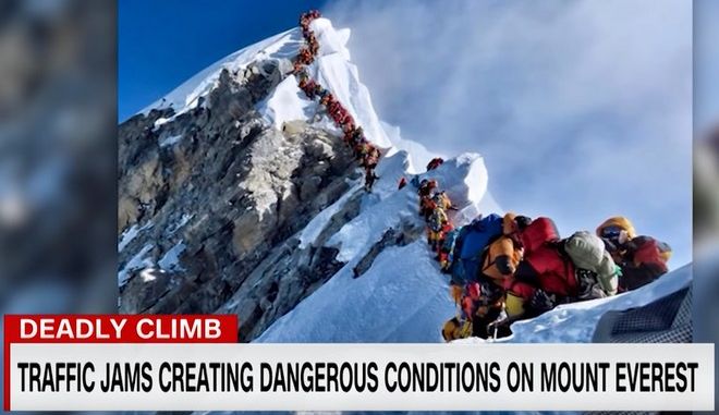 Ο αριθμός των φετινών θανάτων αποδίδεται σε μεγάλο βαθμό στον… συνωστισμό στο βουνό- είναι πολύ χαρακτηριστικές οι εικόνες του Euronews με τους ορειβάτες… στην αναμονή: