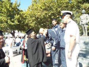 Τις βραβεύσεις έκαναν, ο Μητροπολίτης Τρίκκης και Σταγών κ. Χρυσόστομος, ο Δήμαρχος Τρικκαίων κ. Δημήτρης Παπαστεργίου, ο διοικητής της ΣΜΥ Ταξίαρχος κ. Γ. Λιάκος, ο αντιπρόεδρος της Ελληνικής Ομοσπονδίας Ποδηλασίας κ. Κώστας Τσορτσουκτσίδης,. Επίσης, η αντιδήμαρχος Αθλητισμού, Πολιτισμού, Παιδείας και Νεολαίας του Δήμου Τρικκαίων κ. Εφη Λεβέντη επέδωσε τιμητική πλκέτα τον υποσμηναγό Γιάννη Ταμουρίδη για την προσφορά του στο άθλημα της ποδηλασίας, με πρόσφατη τη συμμετοχή του στους Ολυμπιακούς Αγώνες του Ρίο, εκπροσωπώντας τη χώρα μας. Ο εκπρόσωπος του αναπληρωτή ΥΕΘΑ κ. Δημήτρη Βίτσα, αντιπλοίαρχος Αθανάσιος Μίχας, επέδωσε στον αναμνηστική – τιμητική πλακέτα στον Δήμαρχο Τρικκαίων κ. Δημήτρη Παπαστεργίου, για τη συνεισφορά του Δήμου στη διοργάνωση. Πλακέτες αντήλλαξαν, ο διευθυντής του ΑΣΑΕΔ αντιπλοίαρχος Σπυρίδων Ανδριόπουλος (κάτοχος πολύχρονων ρεκόρ στον μαραθώνιο ποδηλασίας και στα 10 χλμ.) με τον αντιπρόεδρο της ΕΟΠ. Στην τελετή παραβρέθηκαν, ο τρικαλινός Ολυμπιονίκης στην ποδηλασία, Δημήτρης Γεωργαλής, με σημαντική συμμετοχή στα της διοργάνωσης και ο αεικίνητος, πρωτοπόρος τρικαλινός ποδηλάτης (συνταξιούχος πυροσβέστης) Στέλιος Βάσκος.