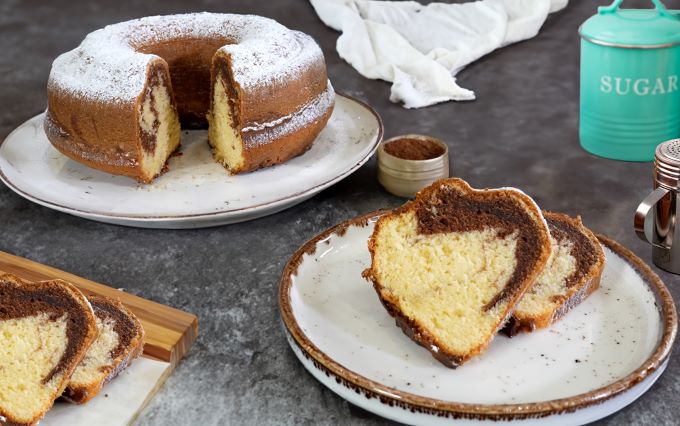 Το πιο νόστιμο, αφράτο δίχρωμο βουτυρένιο κέικ είναι έτοιμο να το απολαύσετε!