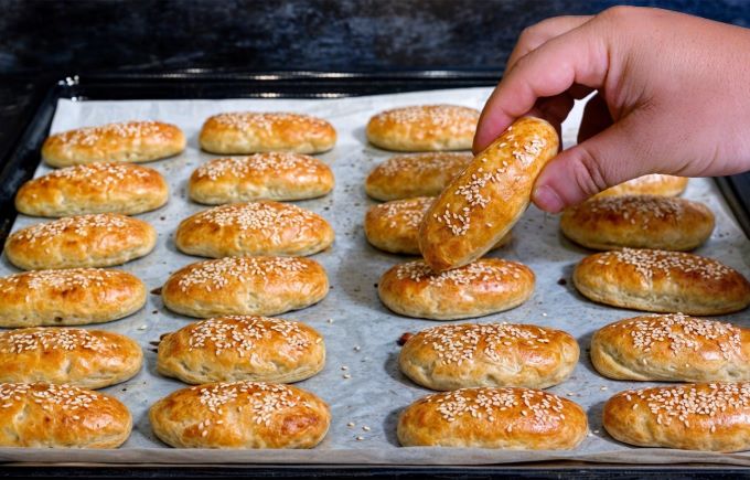 - Μετραμε 30 γρ το κάθε κομμάτι τα δίνουμε σχήμα και τα βάζουμε σε ταψί με λαδόκολλα.
