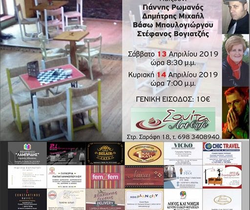 Μια ενδιαφέρουσα θεατρική παράσταση στην οποία συμμετέχουν και Τρικαλινοί, θα δοθεί το διήμερο Σάββατο 13 και Κυριακή 14 Απριλίου στο art cafe “Σουίτα”.