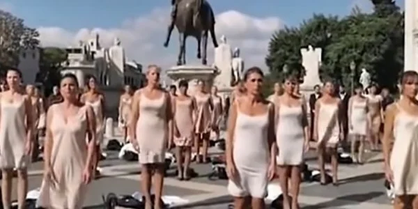 Οι αεροσυνοδοί, διαμαρτυρόμενες για τις χαμένες θέσεις εργασίας αλλά και για τις κακές συνθήκες εργασίας όσων επαναπροσλήφθηκαν στην ITA Airways, ξεκίνησαν να βγάζουν τα ρούχα τους, σε μια συμβολική άρνηση να αποδεχθούν την κατάσταση.