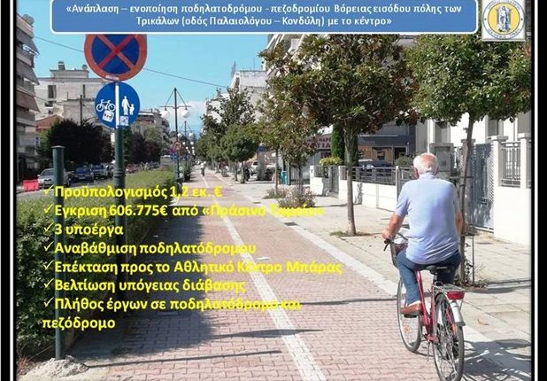 Ανήμερα της γιορτής του Αγίου Δημητρίου, στις 26 Οκτωβρίου 2020, το «Πράσινο Ταμείο» γνωστοποίησε την έγκριση των 606.775 € για το έργο με τον τίτλο «Ανάπλαση – ενοποίηση ποδηλατοδρόμου – πεζοδρομίου Βόρειας εισόδου πόλης των Τρικάλων (οδός Παλαιολόγου – Κονδύλη) με το κέντρο».
