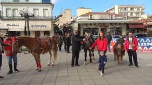 Με τα άλογα του Ιππικού συλλόγου Τρικάλων «Βουκεφάλας» διασκέδασαν το πρω’ι’νό της Κυριακής 30-12-18, δεκάδες παιδιά στην κεντρική πλατεία των Τρικάλων.