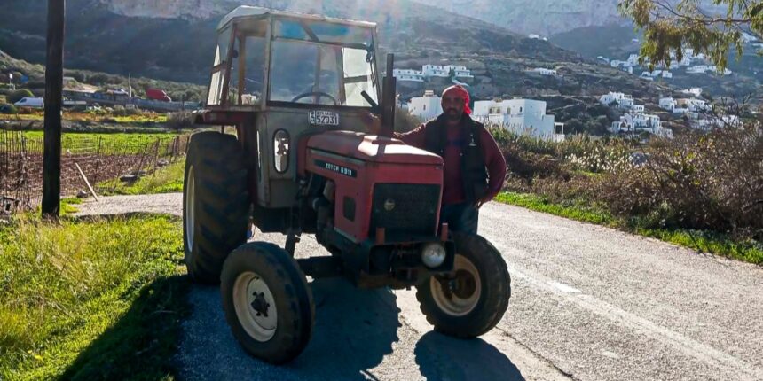 «Θα προσπαθήσω να στήνω κάθε μέρα, για όσο μπορώ, το δικό μου μπλόκο. Το κάνω γιατί κινδυνεύει να χαθεί η παράδοσή μας». Αυτά τα λόγια επαναλάμβανε στο enikos.gr ο 56χρονος Βαγγέλης Βλαβιάνος, ο οποίος μετέτρεψε το τρακτέρ του σε σύμβολο διαμαρτυρίας. Στην Αιγιάλη της Αμοργού, μακριά από τις εθνικές οδούς και τα μεγάλα αγροτικά μέτωπα, ένας άνθρωπος ύψωσε τη δική του φωνή, προκειμένου να συμπαρασταθεί στους συναδέλφους του που βρίσκονται στα μπλόκα για 18η ημέρα, ζητώντας συνεχίσουν να ασκούν με αξιοπρέπεια το επάγγελμά τους.