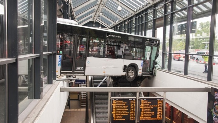 Σοκαριστικό ήταν το ατύχημα στο Αμβούργο, όταν περαστικοί είδαν ένα λεωφορείο να πέφτει στο κτίριο του σταθμού και να εγκλωβίζεται πάνω ακριβώς από τις κυλιόμενες σκάλες. Ευτυχώς δεν υπήρξαν τραυματισμοί, αν και τα αίτια δεν έχουν ξεκαθαριστεί ακόμη. Το λεωφορείο ξέφυγε από την πορεία του, έπεσε στην τζαμαρία του σταθμού τρένων Hamburg-Bergedorf και σταμάτησε στην άλλη πλευρά του κτιρίου. Οι φωτογραφίες που κάνουν τον γύρο του κόσμου, δείχνουν το λεωφορείο να κρέμεται πάνω από τις σκάλες και λίγα μέτρα πάνω από το ισόγειο πάτωμα. Οι επιβάτες που βρίσκονταν στο σημείο έκαναν λόγο για σκηνικό κινηματογράφου, όπως ανέφεραν είναι κάτι που βλέπουν μόνο σε ταινίες δράσης. Στο λεωφορείο δεν υπήρχαν επιβάτες, ενώ δεν τραυματίστηκαν ούτε όσοι βρίσκονταν εκείνη την ώρα στο σημείο. Σύμφωνα με τους αρμόδιους του σταθμού, ο 58χρονος οδηγός είναι έμπειρος και σοβαρός επαγγελματίας. Το κόστος για τις επισκευές δεν έχει γίνει γνωστό, ενώ γίνονται έρευνες για να εξακριβωθούν τα αίτια.