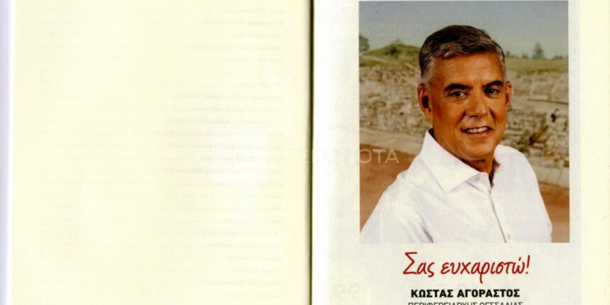 Το ημερολόγιο του 2024 που εκδόθηκε από την Περιφέρεια Θεσσαλίας με κονδύλια του ΕΣΠΑ, δεν περιλαμβάνει το editorial του νέου περιφερειάρχη Δημήτρη Κουρέτα, αλλά του Κώστα Αγοραστού, που δεν είναι πλέον περιφερειάρχης.