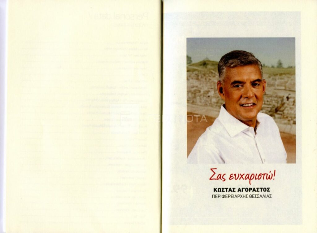 Το ημερολόγιο του 2024 που εκδόθηκε από την Περιφέρεια Θεσσαλίας με κονδύλια του ΕΣΠΑ, δεν περιλαμβάνει το editorial του νέου περιφερειάρχη Δημήτρη Κουρέτα, αλλά του Κώστα Αγοραστού, που δεν είναι πλέον περιφερειάρχης.