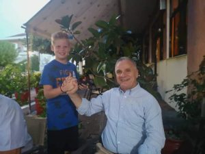 Στη φώτο με ένα μικρό φίλο του, σε χαρούμενο…. “μπασκετικού” τύπου, χαιρετισμό.