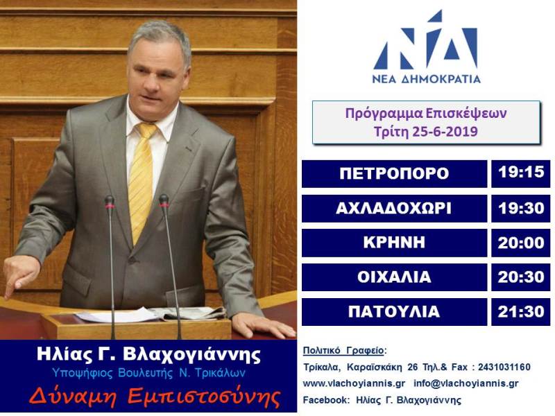 ΤΟ ΠΡΟΓΡΑΜΜΑ ΠΕΡΙΟΔΕΙΩΝ ΤΟΥ ΗΛ> ΒΛΑΧΟΓΙΑΝΝΗ ΓΙΑ ΤΗΝ ΤΡΙΤΗ 25 ΙΟΥΝΙΟΥ
