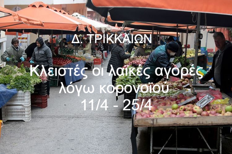 Κλείνουν από το Σάββατο 11 Απριλίου οι λαϊκές αγορές στον Δ. Τρικκαίων