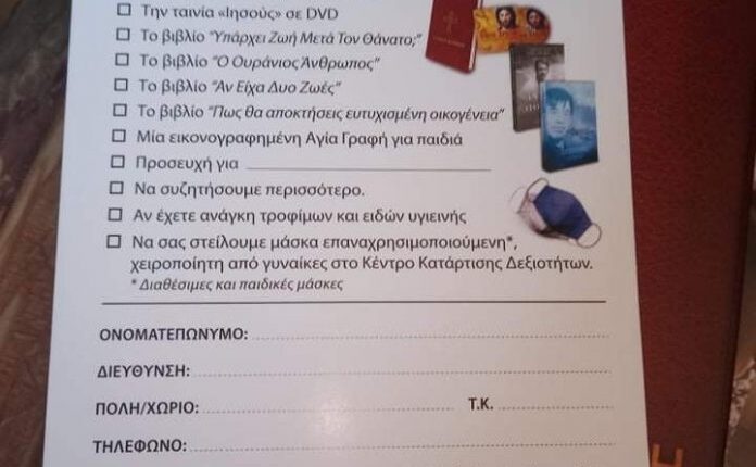Άφησαν στις πόρτες των σπιτιών σακούλες που περιέχουν μία Καινή Διαθήκη και διάφορα φυλλάδια της ομάδας, στο πλαίσιο της προγραμματισμένης δραστηριότητάς τους με την ονομασία: «Operation Joshua-Κάθε σπίτι 2021» (Επιχείρηση Ιησούς του Ναυή- Κάθε σπίτι 2021). Οι καλοκαιρινές αυτές εξορμήσεις τους «ΚΑΘΕ ΣΠΙΤΙ» έχουν αρχίσει από το 2008.