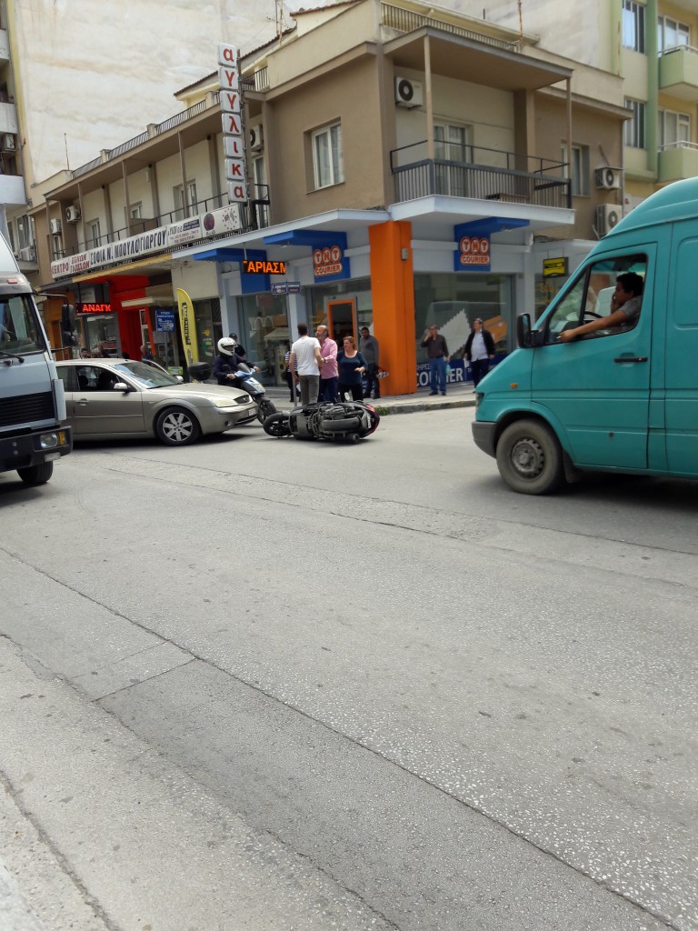 Νεαρός Τρικαλινός κινούμενος με μηχανάκι στην οδό Κονδύλη παρασύσρθηε από Ι.Χ αυτοκίνητο που έστριβε στην οδό Σωκράτους.