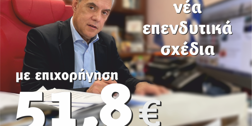 Ξεκινούν εκατόν τριάντα επτά νέα επενδυτικά σχέδια σε όλη τη Θεσσαλία, με συνολικό ποσό επιχορήγησης 51,8εκατομμύρια ευρώ από τον Αναπτυξιακό Νόμο. Ο Περιφερειάρχης Θεσσαλίας Κώστας Αγοραστός υπέγραψε τον Οριστικό Πίνακα Κατάταξης των επενδυτικών σχεδίων που υποβλήθηκαν στην Διεύθυνση Αναπτυξιακού Προγραμματισμού της Περιφέρειας και οδηγούν σε επενδύσεις συνολικού προϋπολογισμού109,2 εκατομμυρίων ευρώ. Πρόκειται για την υπαγωγή: