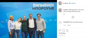 Μία οικογενειακή φωτογραφία επέλεξε να αναρτήσει ο πρόεδρος της ΝΔ, Κυριάκος Μητσοτάκης, στον λογαριασμό του στο instagram μετά τη νίκη στις εκλογές.