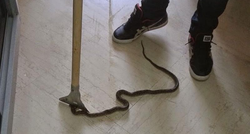 Ειδοποιήθηκε η Πυροσβεστική Υπηρεσία και διαπιστώθηκε ότι επρόκειτο για οχιά, την οποία πήραν οι ειδικοί πυροσβέστες και μετέφεραν στην ύπαιθρο, όπου και αφέθηκε ελεύθερη στο φυσικό της περιβάλλον.