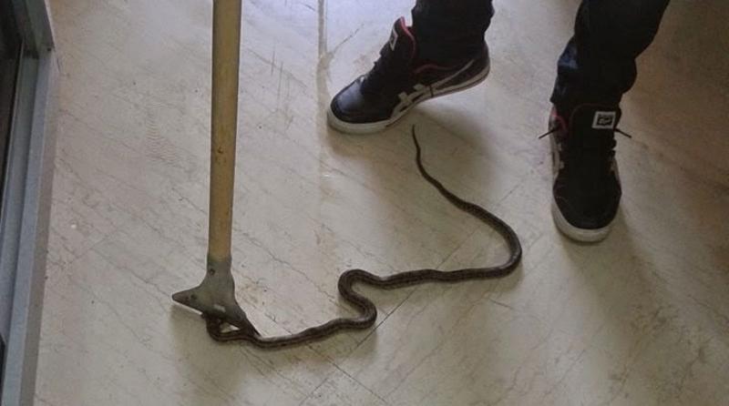 Ειδοποιήθηκε η Πυροσβεστική Υπηρεσία και διαπιστώθηκε ότι επρόκειτο για οχιά, την οποία πήραν οι ειδικοί πυροσβέστες και μετέφεραν στην ύπαιθρο, όπου και αφέθηκε ελεύθερη στο φυσικό της περιβάλλον.