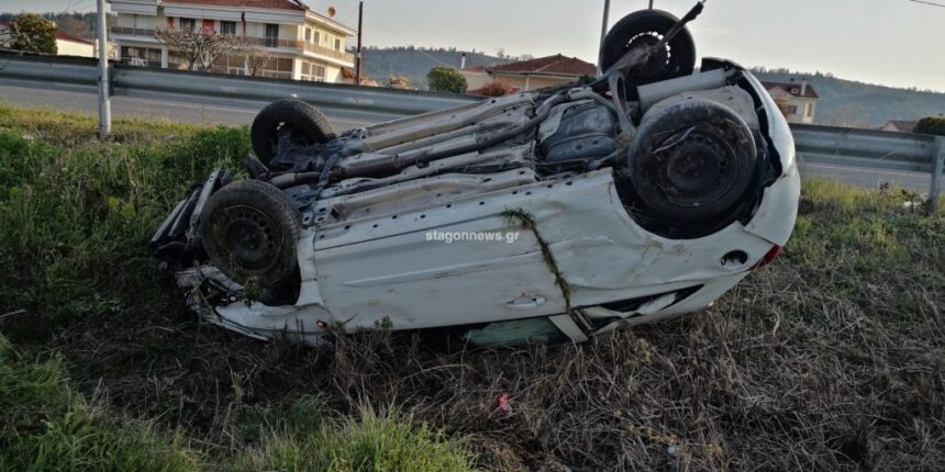 Ο οδηγός του αυτοκινήτου έχασε τον έλεγχο για άγνωστη αιτία, με αποτέλεσμα να τουμπάρει το αυτοκίνητο.