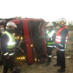 Στο σημείο έσπευσαν δυο πυροσβεστικά οχήματα με τους πυροσβέστες να απεγκλωβίζουν τον οδηγό τον οποίο μετέφερε ασθενοφόρο του ΕΚΑΒ στο Νοσοκομείο Τρικάλων.