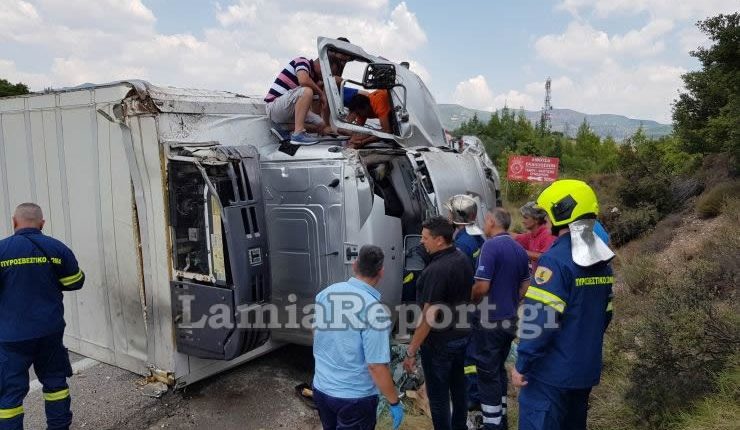 Η νταλίκα κατέβαινε από το Δομοκό, όταν στη στροφή σύμφωνα με τα όσα είπε ο 24χρονος οδηγός της, έχασε τα φρένα με αποτέλεσμα να βγει στο αντίθετο ρεύμα και να ανατραπεί.