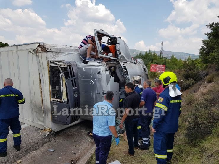Διερχόμενοι οδηγοί, οι οποίοι ευτυχώς δε βρέθηκαν στιγμές νωρίτερα στην ανεξέλεγκτη πορεία της νταλίκας, προσπάθησαν να βοηθήσουν, ωστόσο χρειάστηκε η επέμβαση της 7ης ΕΜΑΚ και της Πυροσβεστικής για τον ασφαλή απεγκλωβισμό του 24χρονου.