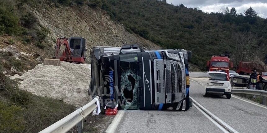 Τροχαίο ατύχημα σημειώθηκε το πρωί της Κυριακής στην Εθνική Οδό Καλαμπάκας – Παναγίας, στο ύψος της Ορθοβουνίου, όταν νταλίκα εξετράπη της πορείας της και ντελαπάρισε στο σημείο.
