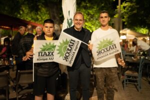 Παρόντες στη συγκέντρωση ο βουλευτής Γ. Οικονόμου, οι υποψήφιοι βουλευτες του κόμματος και στελέχη.