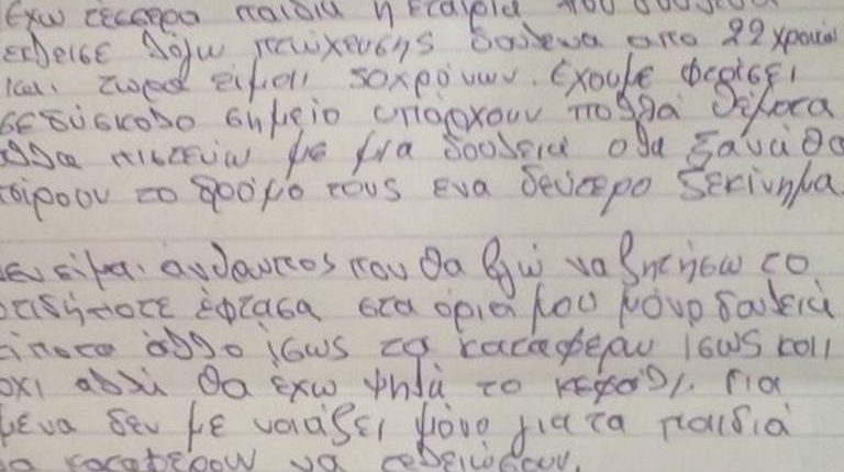 Η αγωνία ενός 50χρονου Ηρακλειώτη για να βρει δουλειά και να μεγαλώσει με αξιοπρέπεια τα παιδιά του, αποτυπώνεται στο γράμμα που έγραψε ο ίδιος και στο οποίο ζητάει εργασία.