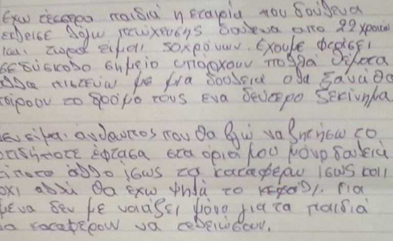 Η αγωνία ενός 50χρονου Ηρακλειώτη για να βρει δουλειά και να μεγαλώσει με αξιοπρέπεια τα παιδιά του, αποτυπώνεται στο γράμμα που έγραψε ο ίδιος και στο οποίο ζητάει εργασία.