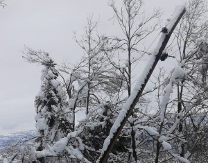 Συνεργεία του εργολάβου κ. Γατζούλα μεταβαίνουν από ένα σημείο και μετά με τα πόδια σε δύσκολες και αντίξοες συνθήκες ώστε να φτάσουν στις κολώνες της ΔΕΗ που έχουν πέσει και να απακαταστήσουν την ηλεκτροδότηση.